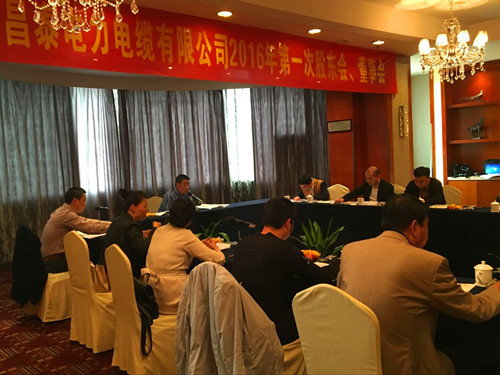 2016年4月22日,浙江昌泰电力电缆有限公司2016年度第一次股东会、董事会在温州万豪商务大酒店召开。会议由董事长薛敏主持,公司股东代表、董事以及监事会成员出席了会议。